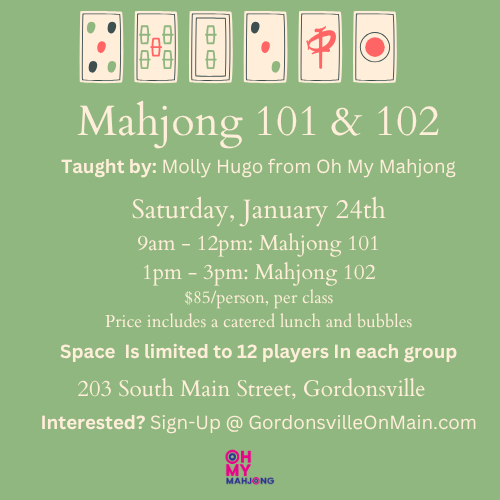 Join teacher Molly Hugo for a full-day Mahjong immersion, perfect for beginners and those ready to take their game to the next level!